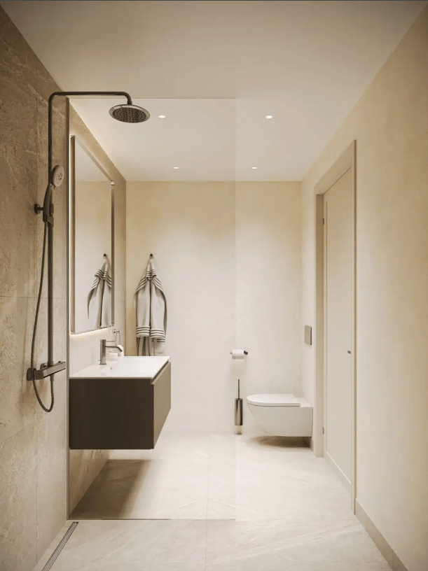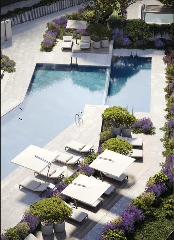 Apartamenty i penthouse’y mają otwarte układy wnętrz, duże przeszklenia i nowoczesne wykończenia, podczas gdy wille ogrodowe posiadają prywatne działki do 550 m², a penthouse’y i podniebne wille oferują solaria na dachu z opcjonalnym jacuzzi i kuchnią na świeżym powietrzu.