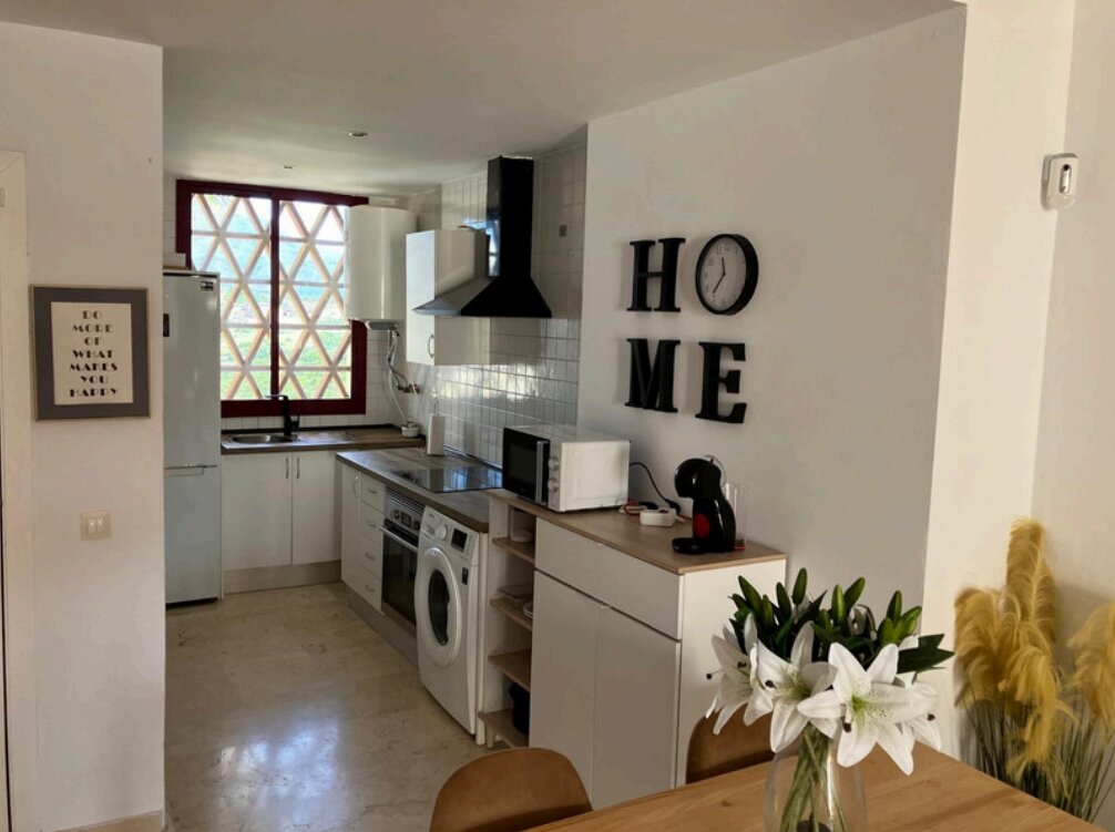 Kuchnia jest w pełni wyposażona i posiada okno z widokiem na góry Sierra Bermeja, co dodatkowo podkreśla walory lokalizacji. Wnętrza wykończone zostały w wysokim standardzie, z wykorzystaniem marmurowych podłóg, podwójnych szyb oraz wbudowanych szaf w każdej sypialni.