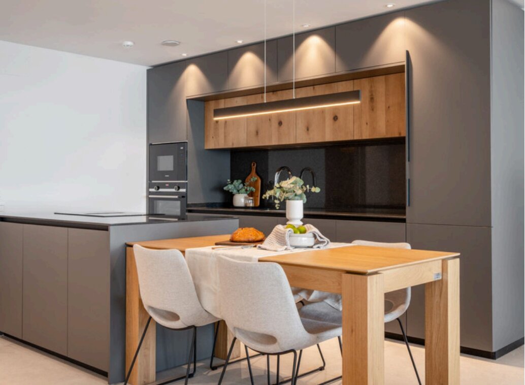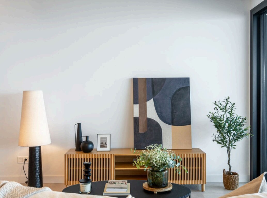 Wnętrze zostało wykończone w nowoczesnym, minimalistycznym stylu z wykorzystaniem wysokiej jakości materiałów. Apartament obejmuje dwie sypialnie oraz dwie łazienki, zapewniając komfort zarówno do zamieszkania, jak i wypoczynku.