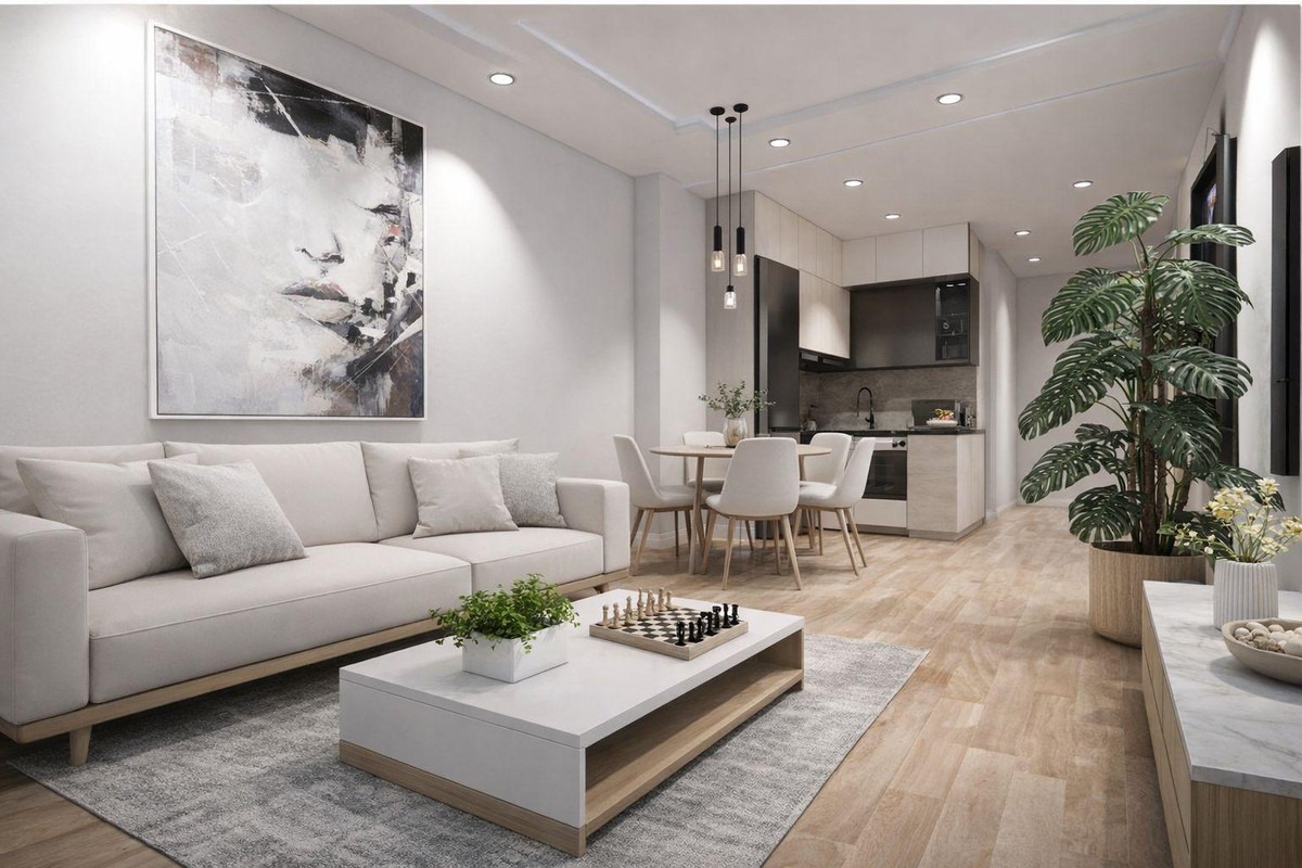 Apartamenty wyróżniają się jasnymi, otwartymi przestrzeniami, funkcjonalnym układem wnętrz oraz nowoczesnym wykończeniem, w tym w pełni wyposażoną kuchnią i klimatyzacją. Penthouse’y oferują prywatne, przestronne solaria – idealne do relaksu, opalania lub spotkań na świeżym powietrzu.